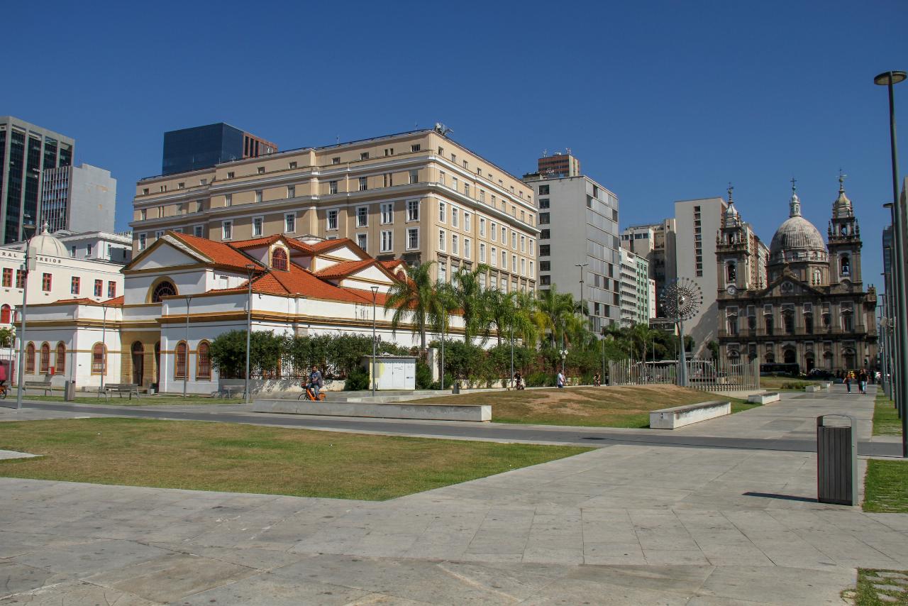 Through the Teles Arch you'll reach the cobble-stoned Travessa do Comercio and the former residence of Carmen Miranda, the Church of Our Lady of the Merchants, the Post Office Cultural Center, France-Brazil House, Bank of Brasil Cultural Center, Candelaria Church and The Olympic Torch.