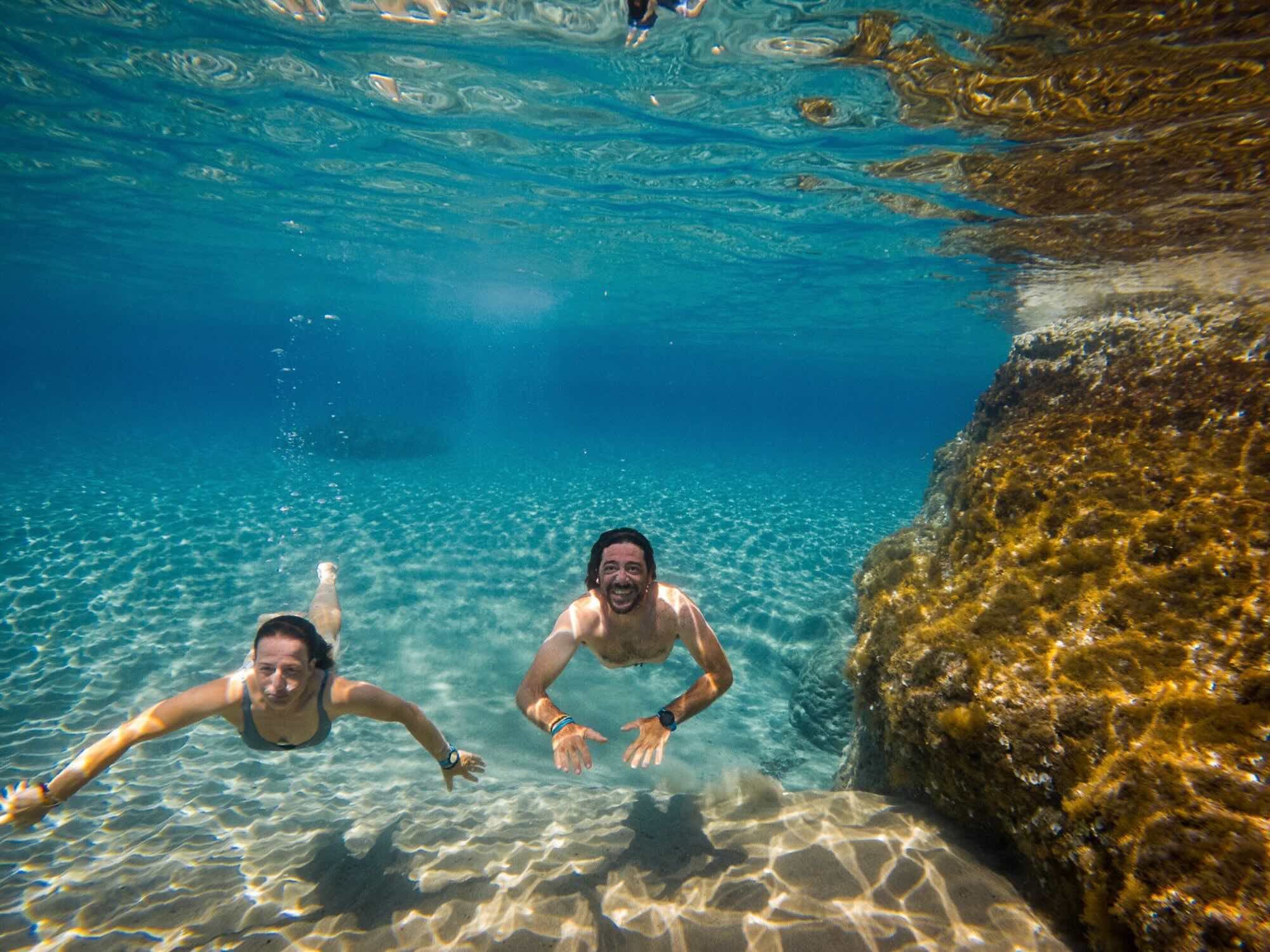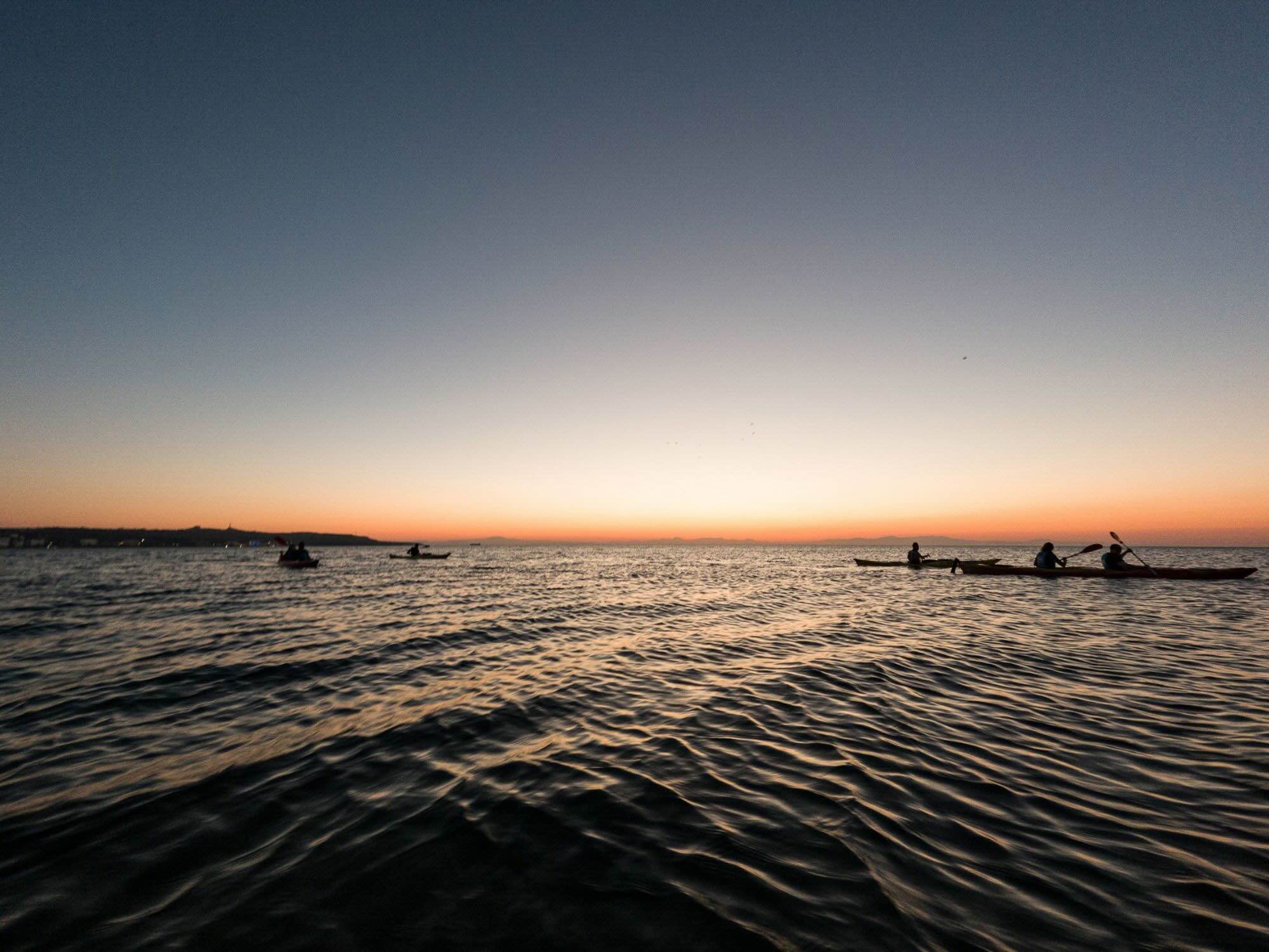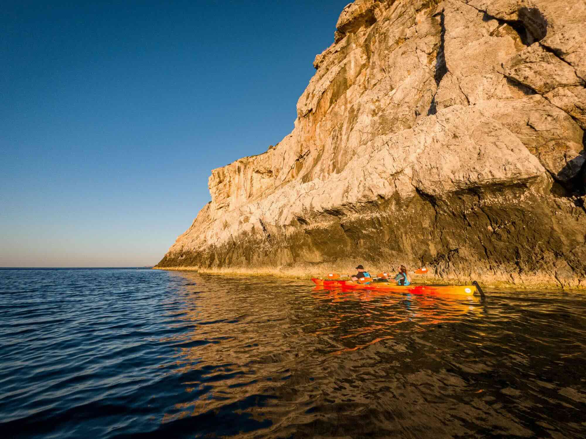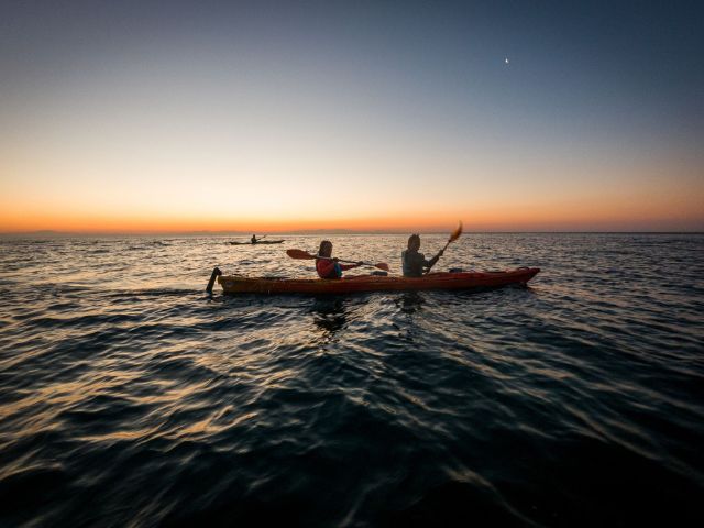 This kayak experience is one of a kind. Before dawn, you will set off on your journey towards the South, following the coastline. At this time of the day, almost no human activity can disturb the serenity and beauty of the scenery. When approaching Antony Quinn's Bay you will slow down and wait for the sunrise! What a fantastic feeling and incredible golden colours! Everything turns red and orange, the sea is shining, and you are finally awarded for the early wake-up call. Paddle distance is 6km