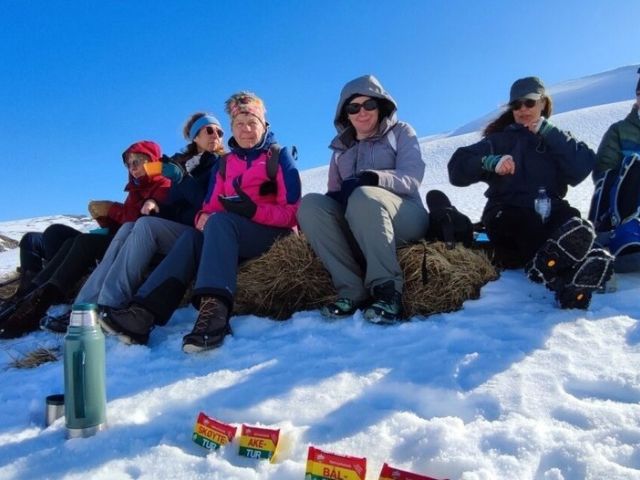 Bring suitable clothes for the current weather, hat, gloves a thermos with hot water and a small backpack